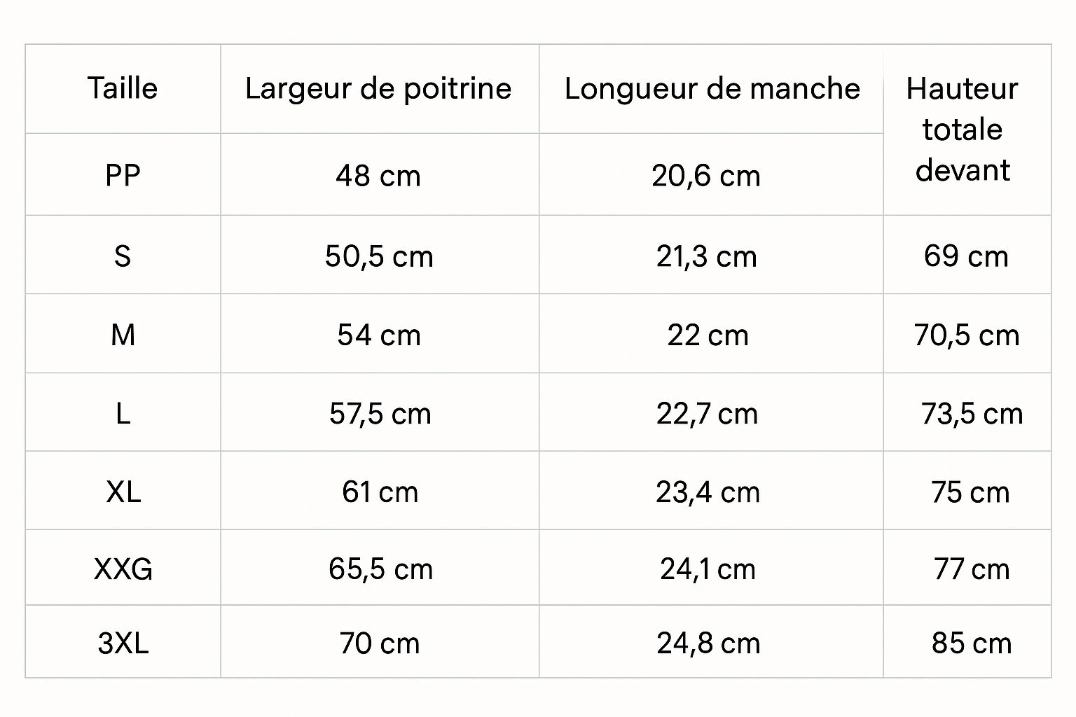 Si vous hésitez entre deux tailles, nous vous conseillons de prendre une taille au-dessus de votre taille habituelle.